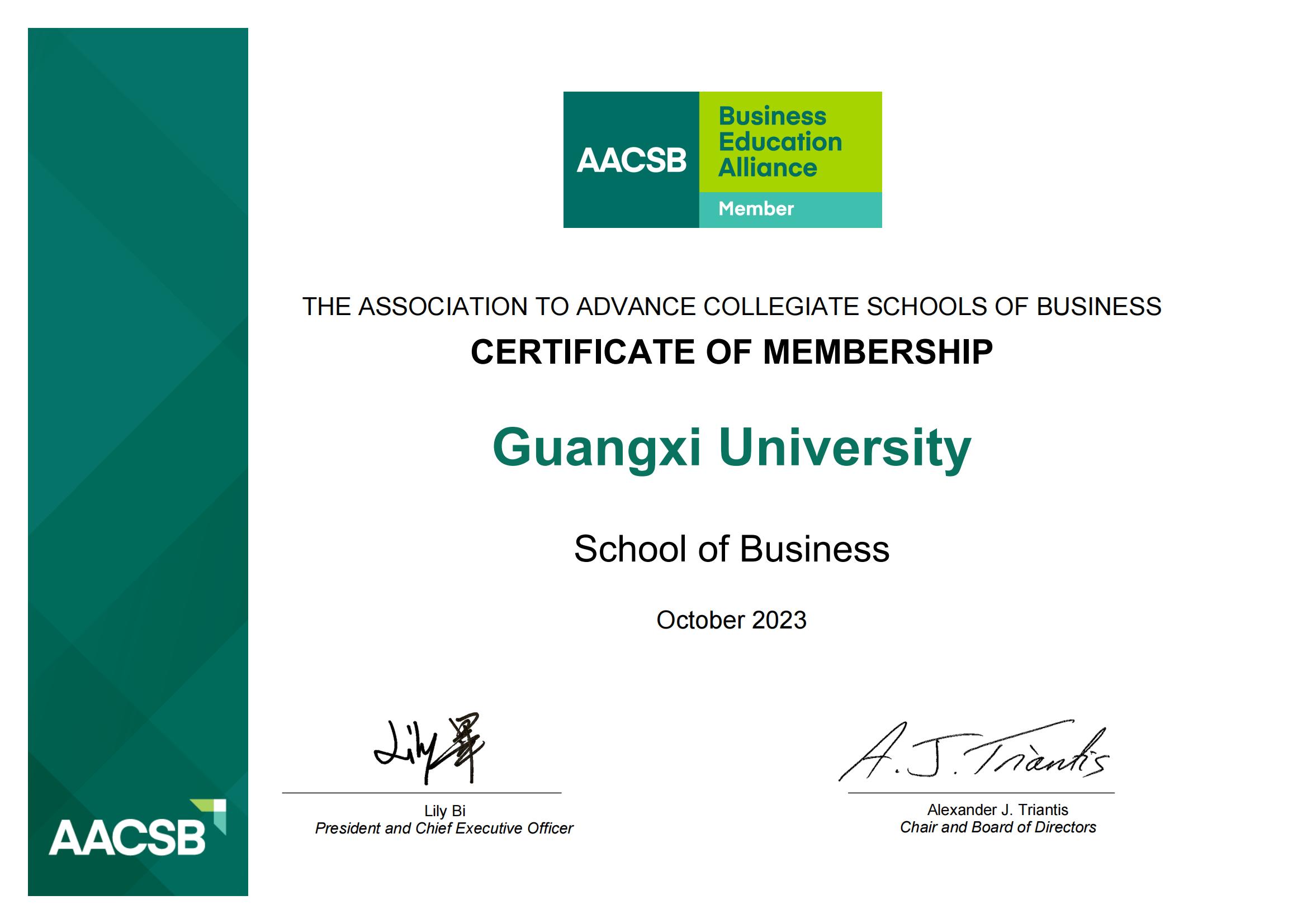 2023年10月7日,国际商学院协会(The Association to Advance Collegiate Schools of Business,简称为AACSB)正式接纳mg冰球突破试玩为会员。