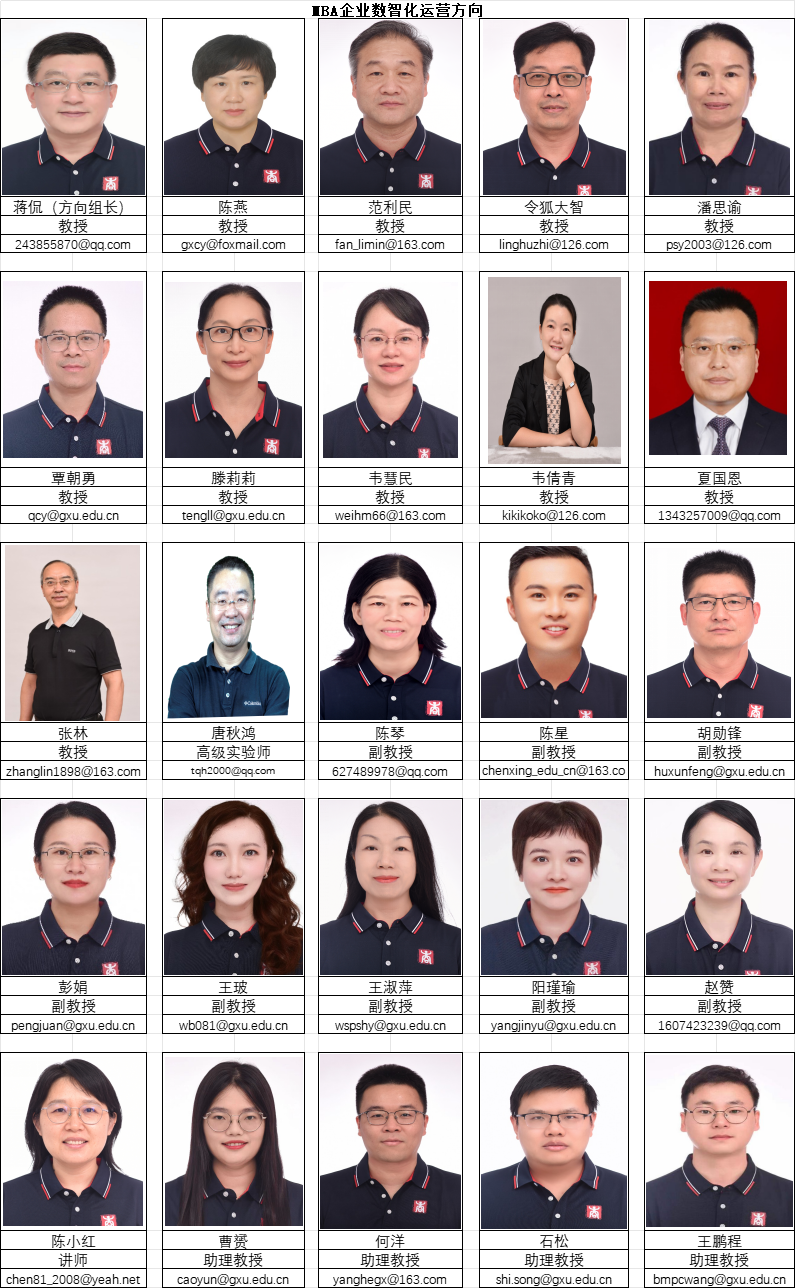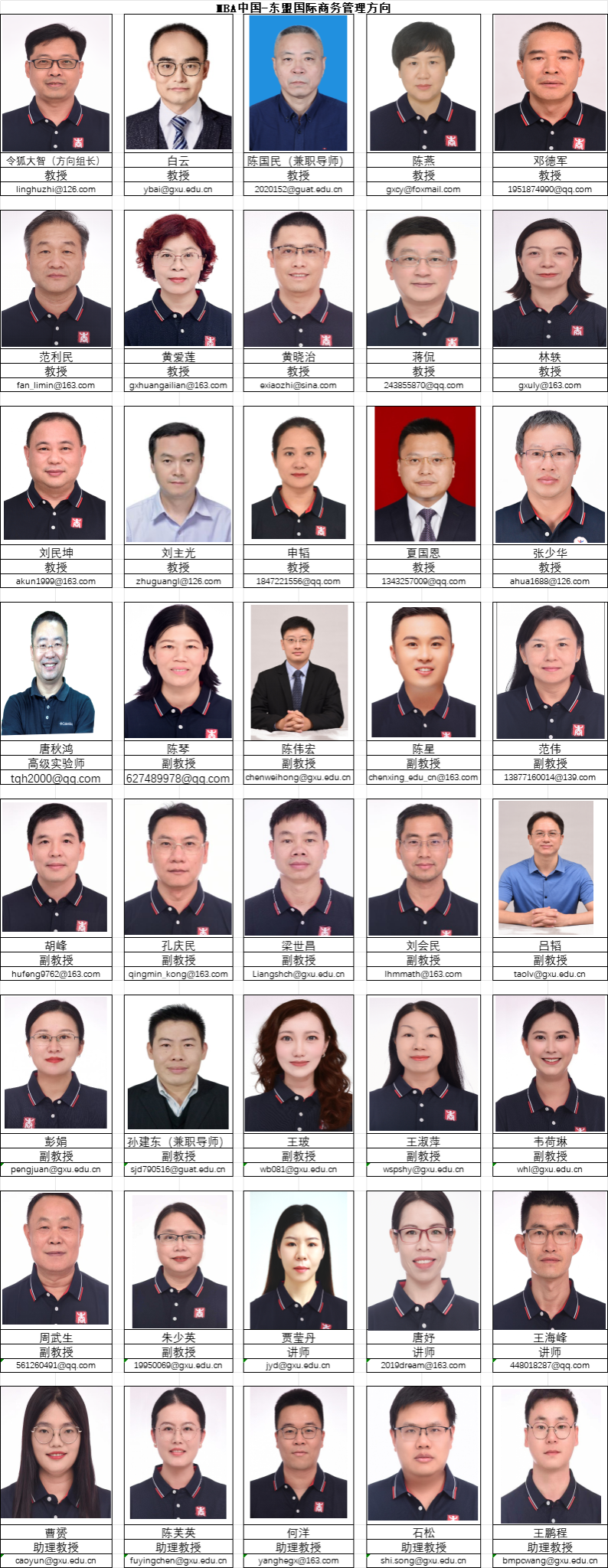 mg冰球突破试玩MBA项目积极探索新商科时代的教育、科技、人才“三位一体”协同融合发展,以服务于国家重大战略需求、区域产业布局对人才需求为牵引,面向东盟,以mg冰球突破试玩学科优势为基础,本项目设有:中国—东盟国际商务管理、科技产业运营、企业数智化运营、企业运营与管理、高级工商管理共5个研究方向。MBA项目创建跨学科协同、教学与科研协同、校际间协同、政产学研协同、境内外协同的多维协同、融合赋能于人才培养全过程,强化人才的实践与创新能力,形成了分类塑型的国际商务型经营管理人才、科技型经营管理人才、高端制造业服务业的经营管理人才的人才摇篮。